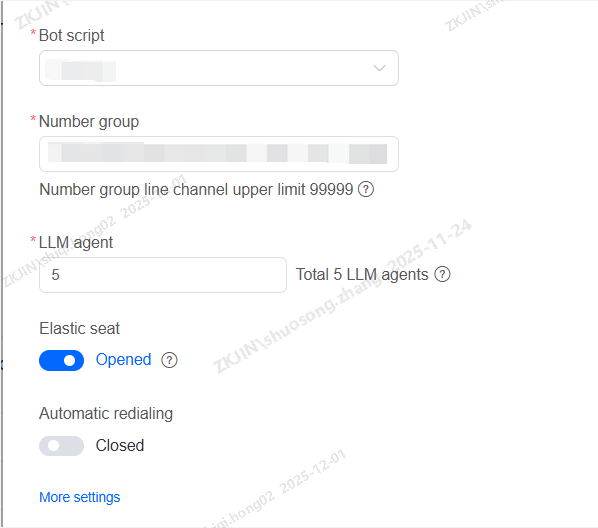 Concurrent Agents determines the number of bots that can make calls simultaneously. To handle a large volume of calls in a short time, estimate the required concurrency based on the average call duration.