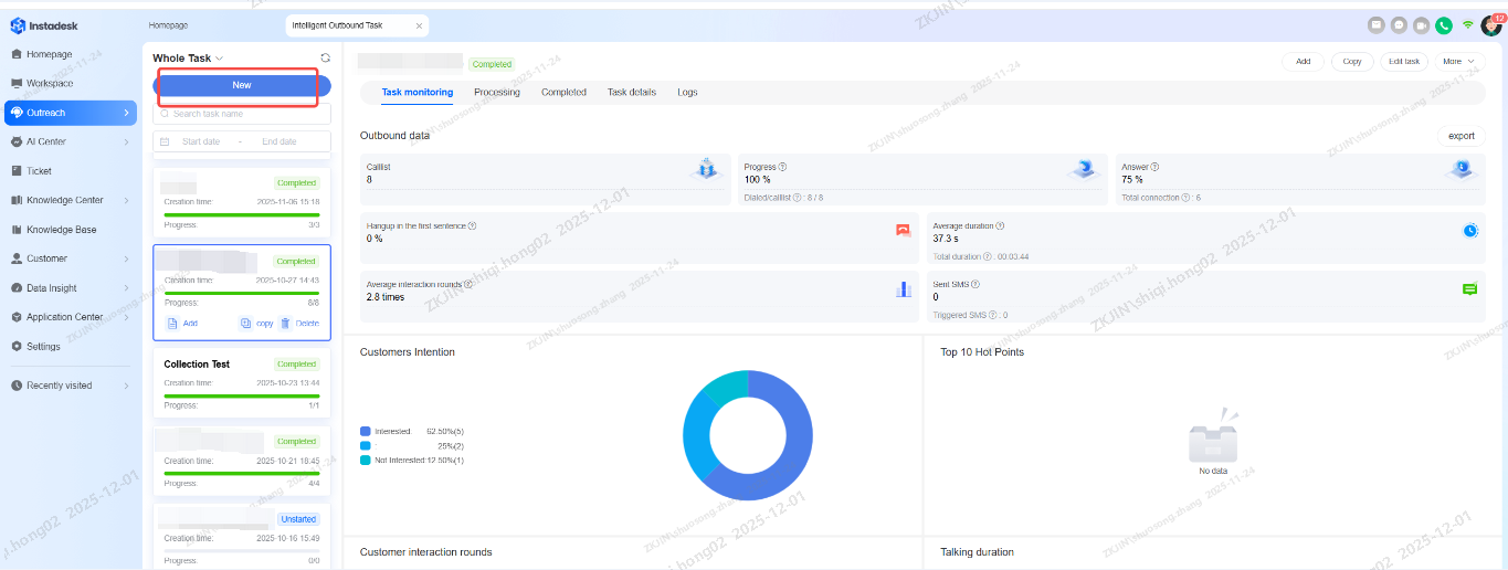 After an outbound task is assigned and completed, team managers typically need to view its specific details and performances. This can be done in the system's Data Insight module