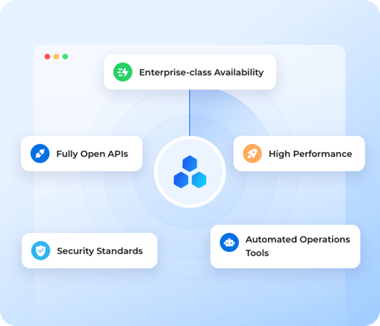 The platform supports active-active deployment and multi-region disaster recovery, including dual-region three-datacenter setups, to ensure business continuity.