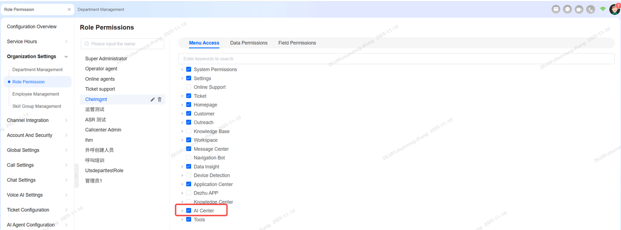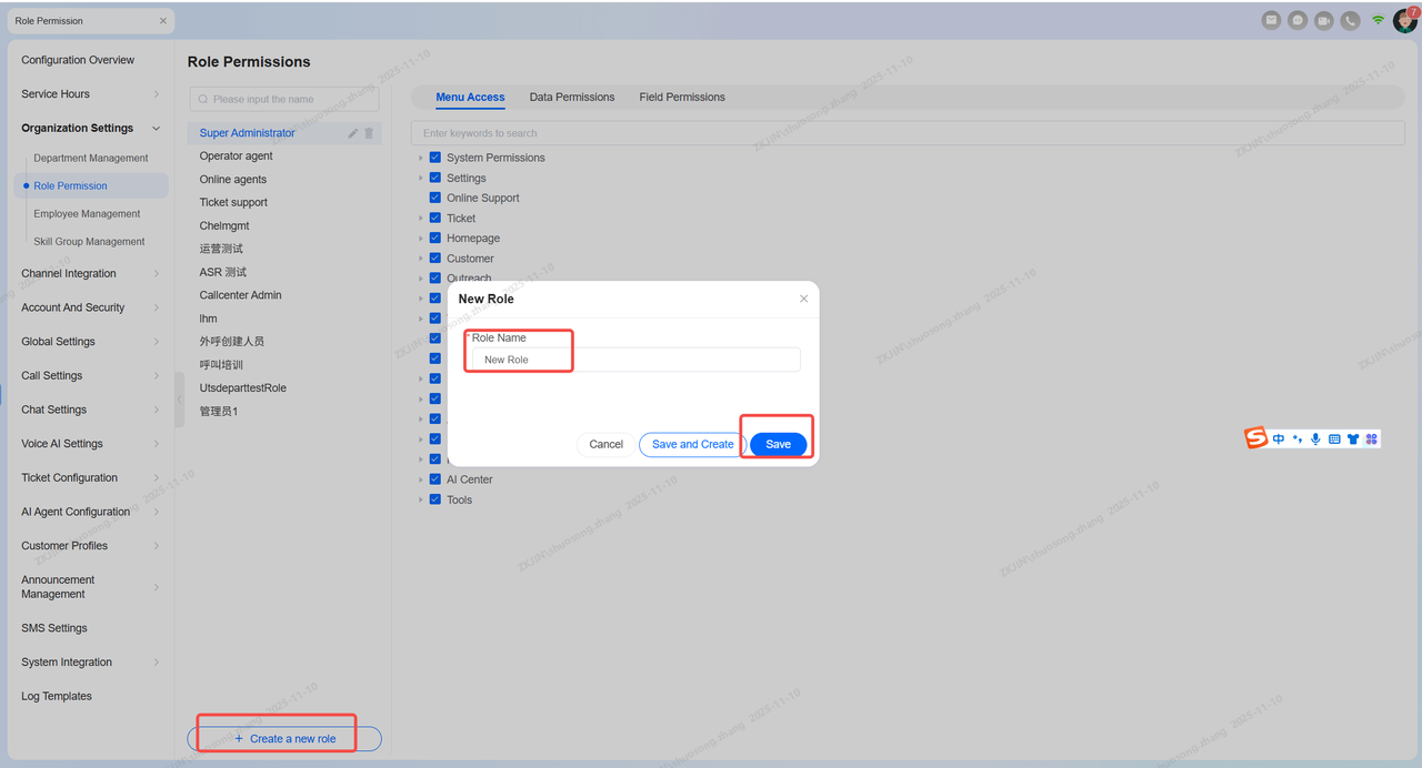 Note: The Super Administrator role has all permissions enabled by default, which cannot be modified or reduced. All other roles and their permissions can be configured according to actual business needs.
