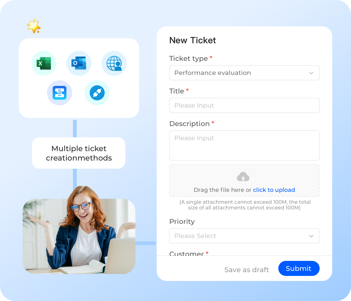 รองรับการสร้างทิกเก็ตหลายช่องทาง หลายบทบาท หลายสถานการณ์ และข้ามแพลตฟอร์ม